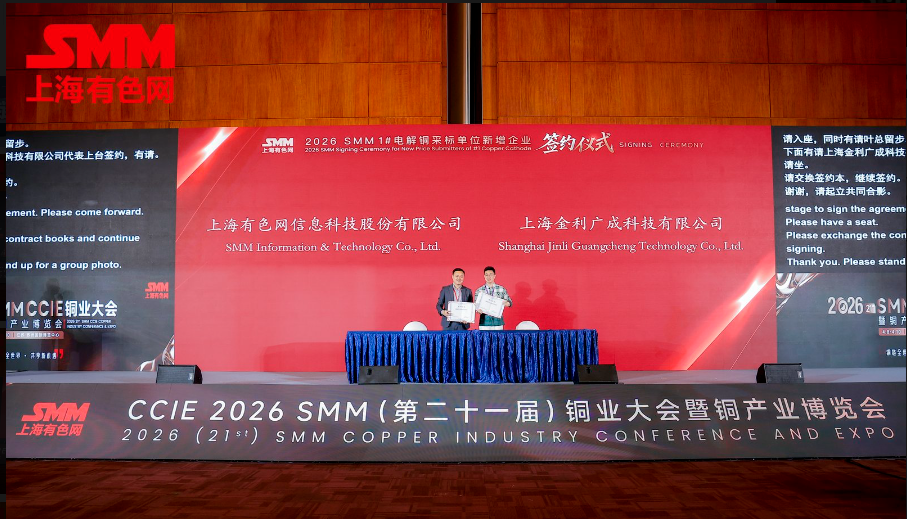 为进一步提升市场服务质效、增强价格透明度与公允性,SMM 依据 SMM 1# 电解铜报价方法论,严格遵循 IOSCO 金融基准原则,定期对采标单位开展评估并组织授牌签约。2026 年度 SMM 1# 电解铜采标单位新增两家企业:山西北方铜业有限公司、上海金利广成科技有限公司。SMM 大数据总监叶建华与新增的两家企业代表在会议现场进行了签约。